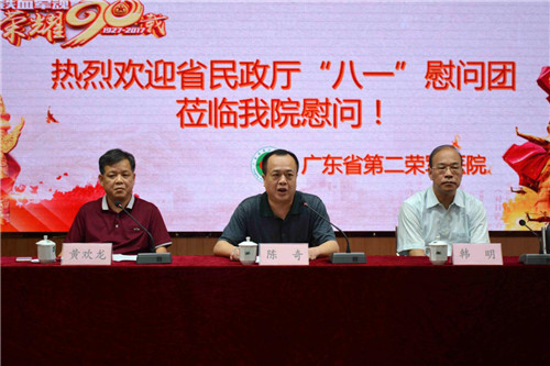 慰问会由省第二荣军医院黄欢龙院长主持。来自梅州的伤残荣军代表丘顺君同志在会上讲述了自己从军历程、在省第二荣军医院疗养的感受和对今后生活的展望,表达了继续发扬部队光荣传统的决心。