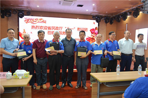 慰问团为荣军代表送上慰问金和慰问品。