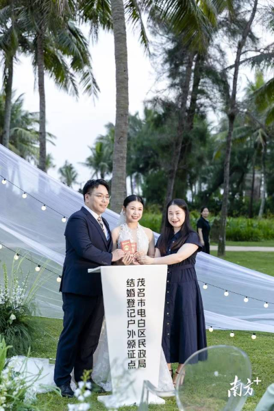 2025年,这两处登记处持续发挥优势,办理婚姻登记业务数量稳步上升。5月17日,茂名发布浪漫海岸国际旅游度假区等首批7个结婚登记户外颁证点。这些户外颁证点打破传统登记场所局限,将婚登服务延伸至风景宜人的景区、设施完备的酒店,他们提供草坪婚礼、沙滩婚礼、水晶教堂婚礼等多样化的目的地婚礼服务,提升新人的领证体验,进一步推动了“甜蜜经济”的发展。