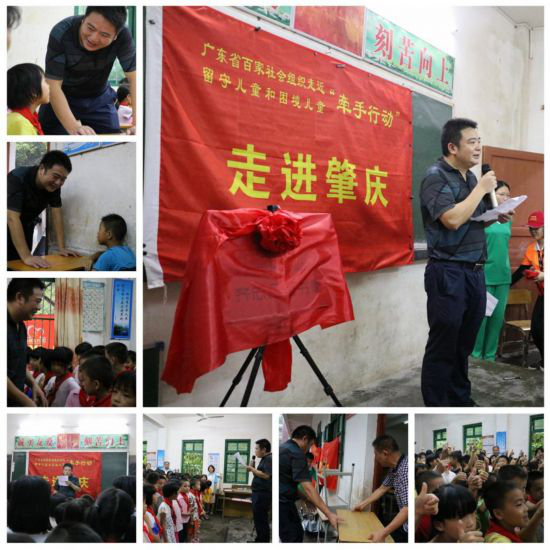 7月7日,齐志社会工作服务中心携手执信中学(水荫路校区)初一10班以及其他社会组织等共计51人前往肇庆开展“百家社会组织走近留守和困境儿童“牵手行动”。在得知肇庆五和镇江布小学教学设备简陋陈旧且缺乏资金购买多媒体设备后,关爱小组为江布小学带来了55寸的多媒体一体机、台式电脑、复印一体机、123套爱心书包套装、物资等超过5.5万元的各类捐赠物资;同时,第26间“齐志公益书屋”在江布小学顺利揭牌。