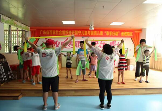 在阳江市福利院,社会组织代表为孩子们派发爱心物资后,开展了一些列趣味课程。第一个课程,由绿瘦慈善基金会志愿者带来弹力带训练教学,通过简单易操作的弹力带动作,引导孩子进行上肢锻炼。紧接着,阳江市光明社会工作者协会通过多媒体教学方式,让孩子学习预防性侵知识。课程结束后,阳江市光明社会工作者协会、广东省和迈骨科疾病研究所分别邀请专家医生现场会诊,为孩子提供眼科、口腔科、骨科方面的检查,并给予康复指导意见。