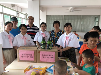 7月12日至13日,佛山市护理学会志愿队联合中国南丁格尔志愿护理服务总队佛山市第一人民医院分队,积极参加“牵手行动”,先后走进云浮市云安区博华残疾人综合服务中心、云浮市云安福利服务中心、罗定市社会福利服务中心3个服务点开展志愿活动,探访残疾特殊儿童,帮助指导孩子们正确洗手养成良好卫生习惯,指导老师学习掌握儿童心肺复苏、瘫痪儿童的手法康复并进行安全护理查房,让专业护理走进基层。此外,还向各服务中心捐赠一批实用的生活、学习用品。