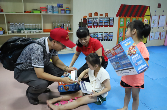 8月23日,行动组来到化州市社会福利院,慰问136名儿童,并为他们送上广东省食品药品打假协会、富迪基金会、北斗星社会工作服务中心捐助的慰问礼物。福利院孩子们看到这些爱心物品兴高采烈,开心地玩起来。志愿者陪着孩子们一起聊天、玩耍。福利院里充满着孩子们和志愿者的欢声笑语。最后,行动组将广东软件行业协会向福利院捐赠1000元慰问金。