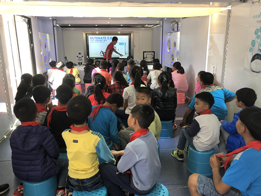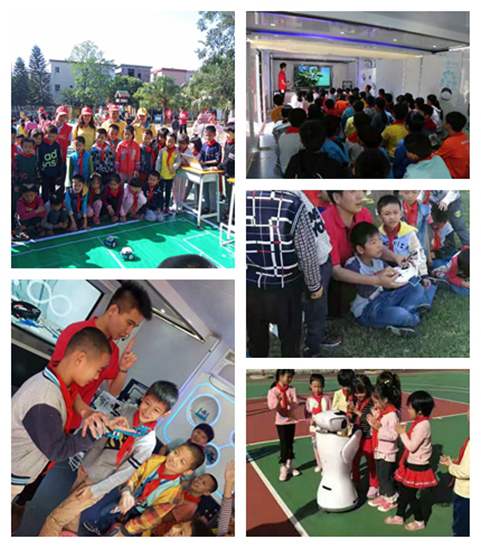 清远组成员广东省社会工作协会联合广州向前直通车科技有限公司,为400多名留守和困境儿童送上别开生面的科普创客教育课