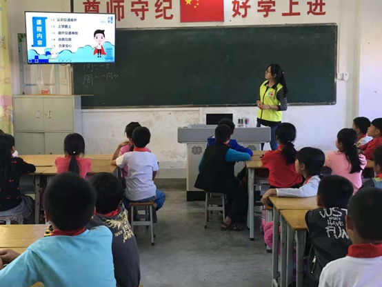 英德市亮石社会工作服务中心郑晓茵为孩子们上安全知识课
