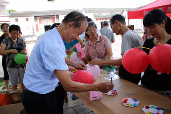 宗族理事长者现场参与中秋画灯笼活动